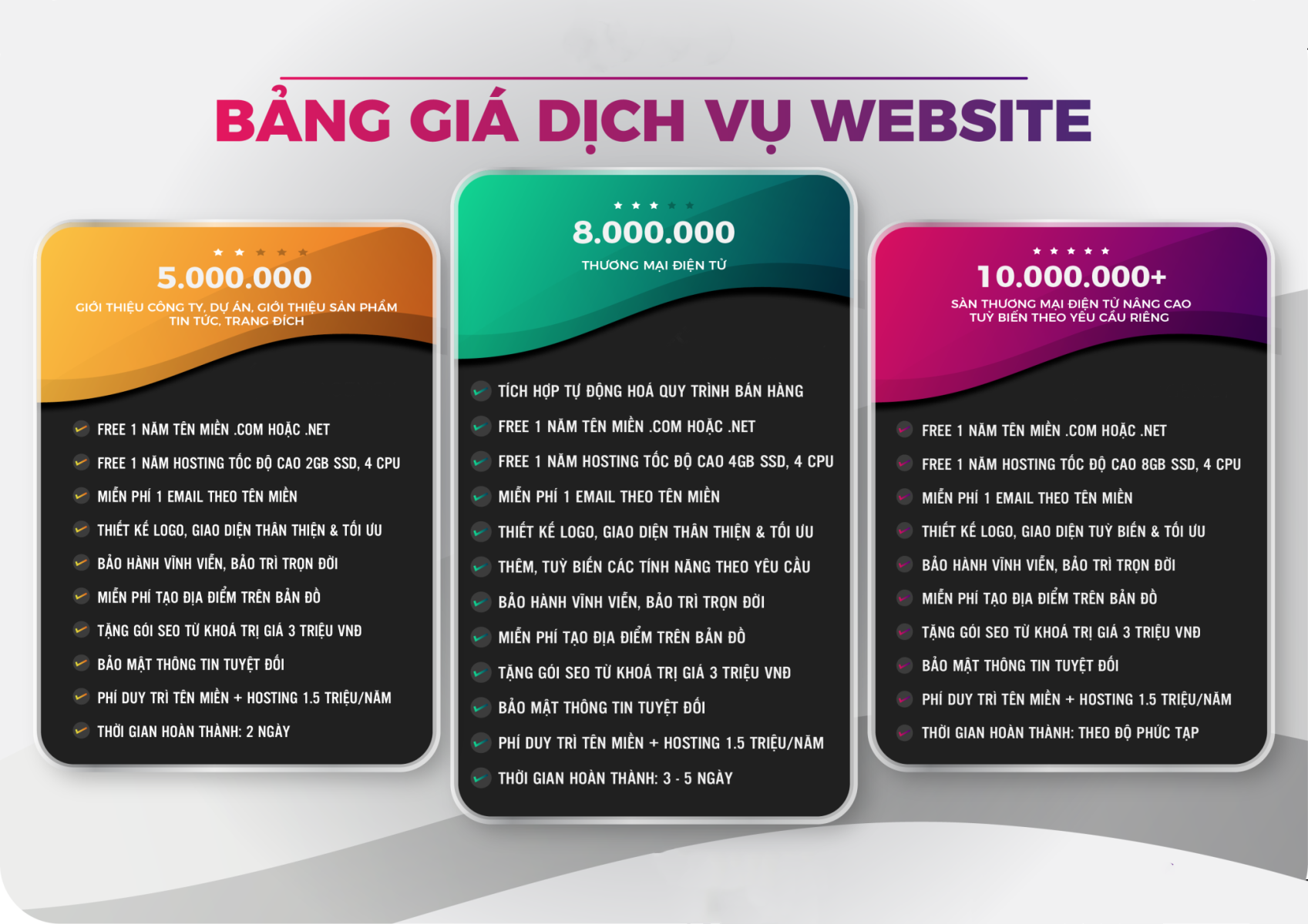 Bảng giá thiết kế website
