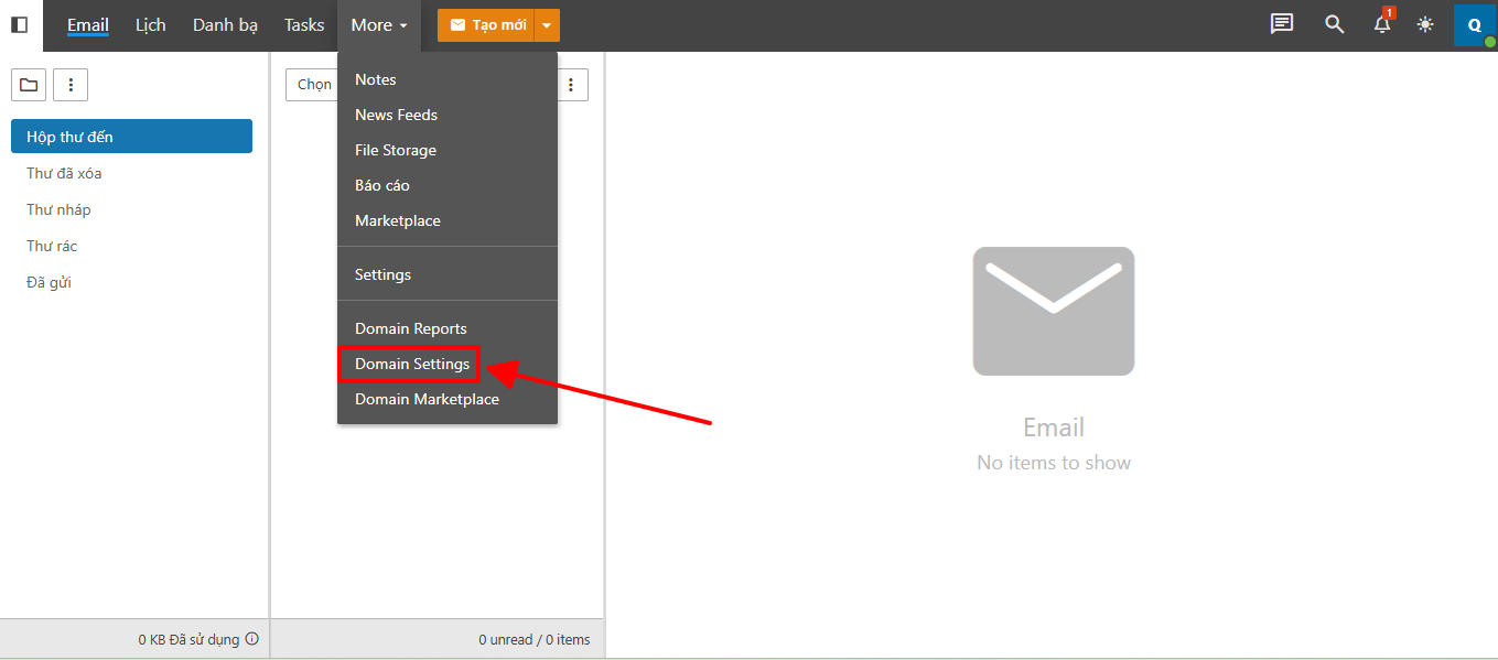 Sau khi chọn đăng nhập xong . Chọn more>>> chon domain settings .